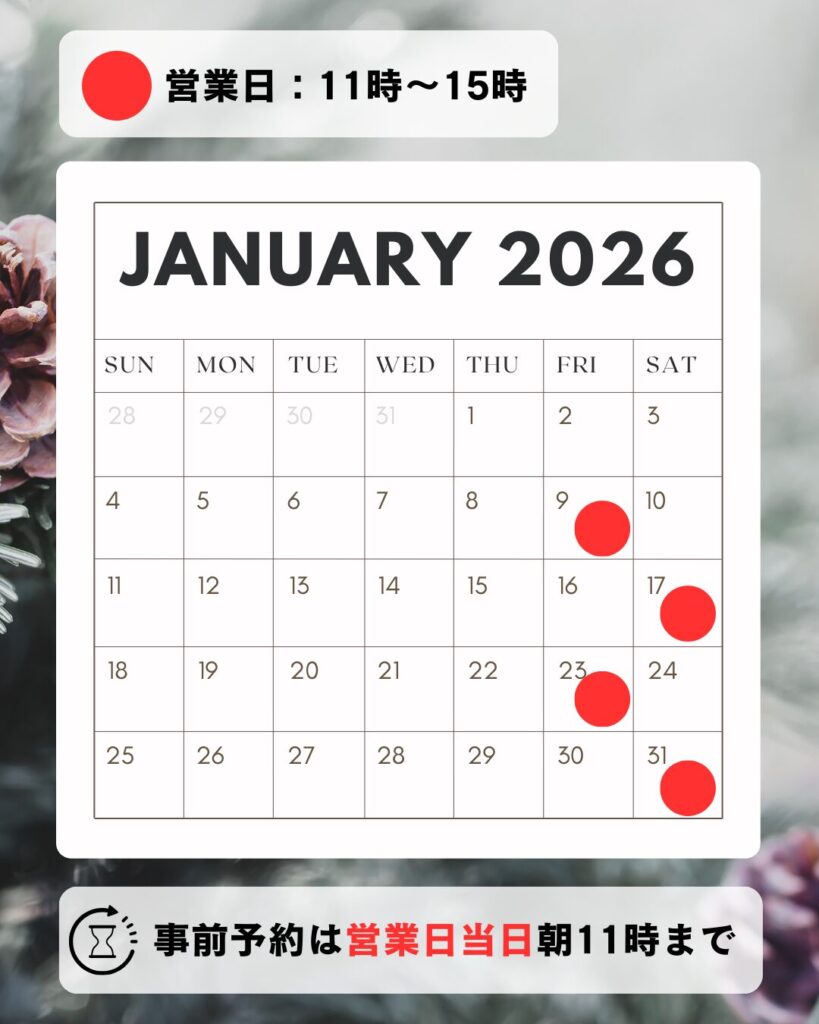 1月の営業日のお知らせ|湘南・藤沢・江の島で楽しむ米粉のグルテンフリーケーキ